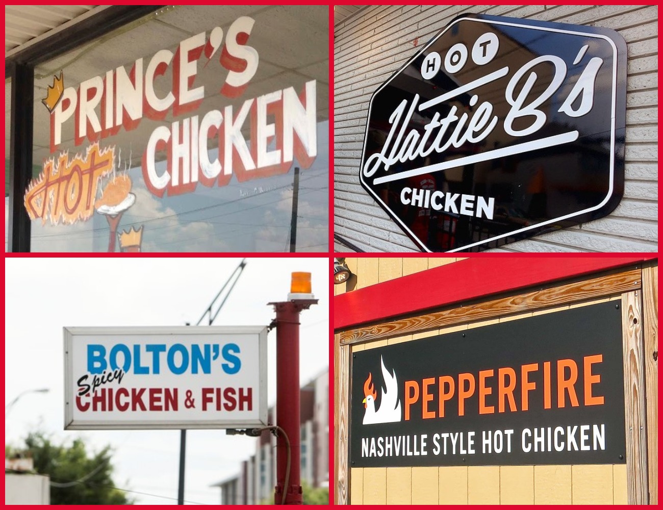 The Contenders: Bolton’s, Hattie B’s, Prince’s, and Pepperfire. If your favorite got left out, I’ve included a few honorable mentions.