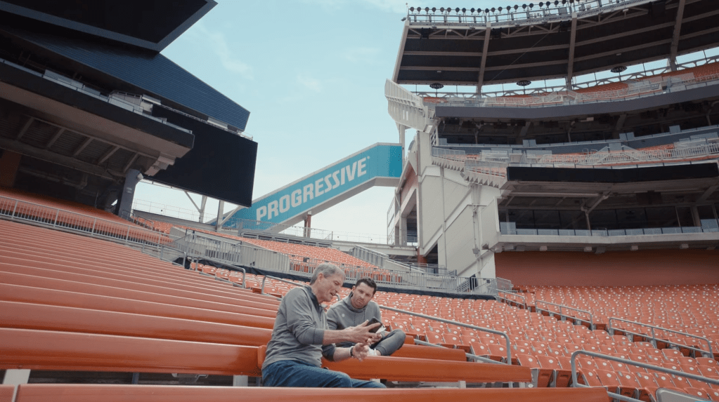 It’s not all bad, though. I’ve got another date for you: on August 28, 2019, following Baker’s stellar rookie season, Progressive Insurance signed him and his wife to an endorsement deal, and “At Home with Baker Mayfield” was born. It’s an ad campaign with a simple premise – that Baker actually lives in the Browns stadium 24/7 – that’s been a major hit. Progressive released eight new commercials in the series this season; I reviewed them in chronological order ahead of Super Bowl Sunday, an exercise I hoped would help me set aside the white-hot rage and debilitating heartbreak I feel over the sorry state of my favorite football team. It didn’t work. Nevertheless, here it is.